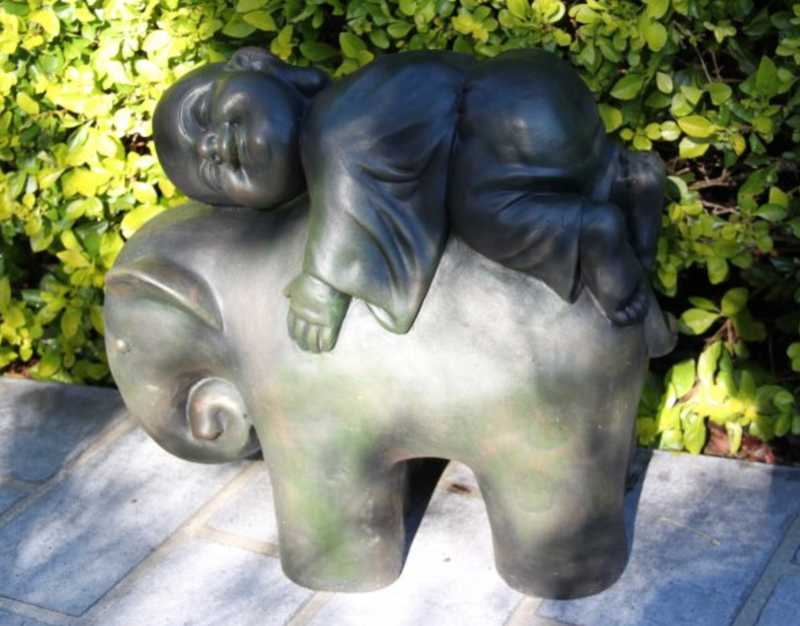 38cm Buddha monk resting on elephant